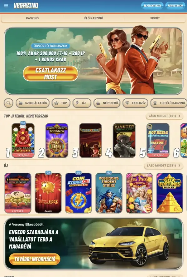 A klasszikus tárcsáktól a modern funkciókig a Vegasino nyerőgépek olyan stúdiók játékai, mint a Play’n GO, a Pragmatic Play, a NetEnt és a Nolimit City, emellett az Evolution Gaming élő casino asztalait is kínáljuk. Magyarország számára támogatjuk a HUF fizetéseket és az átlátható bónuszfeltételeket, így még befizetés előtt ellenőrizheted a részleteket. Ha Vegasino bónuszt szeretnél, regisztráció közben kiválaszthatod, és a fiókodban nyomon követheted. Ez az oldal bemutatja, hogyan működik a mobil platformunk, mire számíthatsz, és hogyan maradhatsz biztonságban, amikor a Vegasino casino Magyarország felületén játszol.